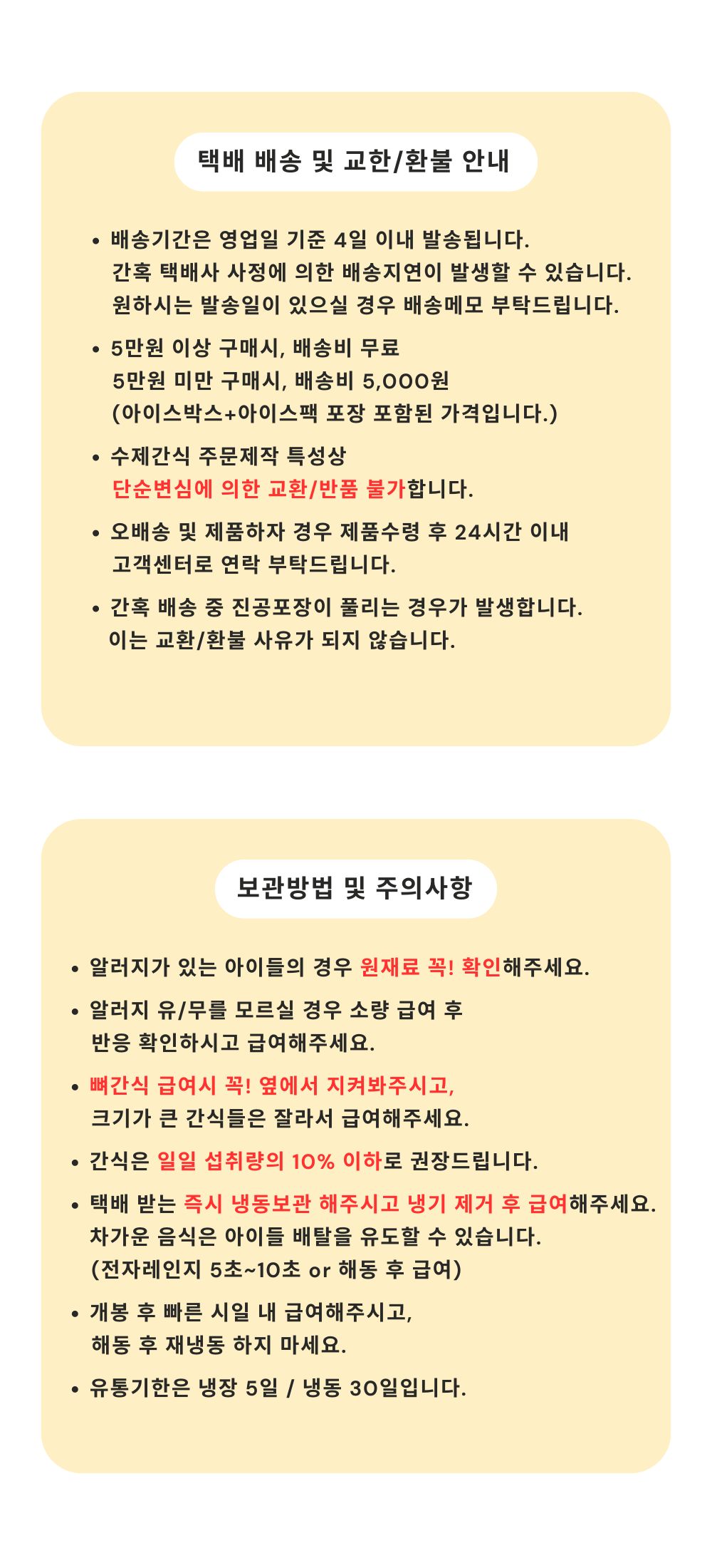 ▶ 택배 배송 및 교환/환불 안내, 보관방법 및 주의사항은